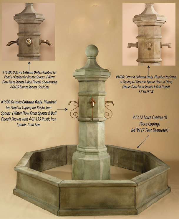 This are very well Made un USA Cast Stone wall and pedestal French, Italian and Spanish style Fountains Good For Outdoor Decor !